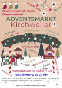 Termin vormerken: am Sonntag, den 30.11.2025 um 16 Uhr findet das gemeinsame Baumschmücken auf der Holl statt. Jung und Alt sind herzlich eingeladen, einen schönen ersten Advent zusammen zu verbringen!